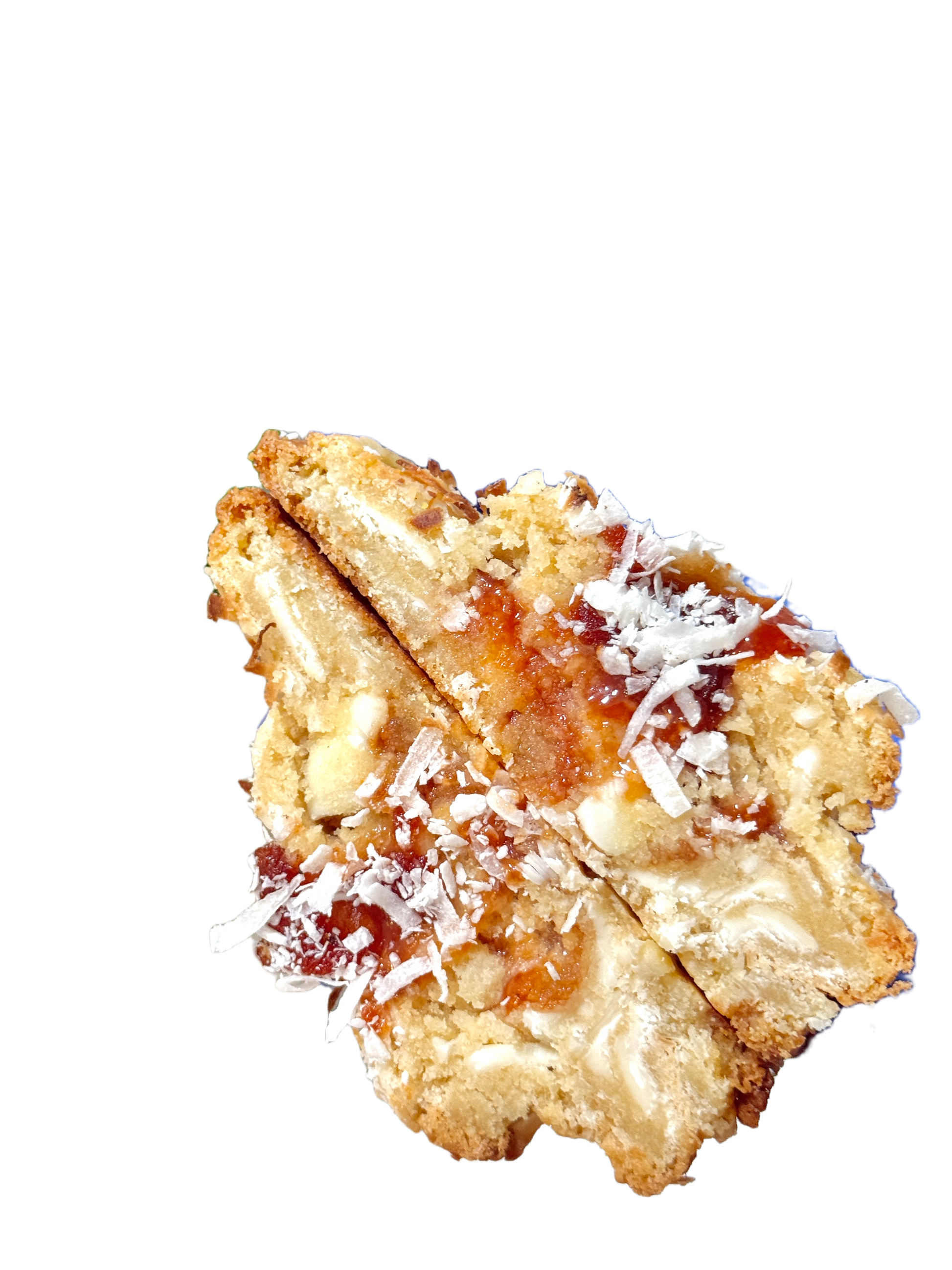 CONTAINS: WHEAT FLOUR, BROWN SUGAR, WHITE SUGAR, RAISING POWDERS, COCONUT, DAIRY, EGGS, SOY, GUAVA FRUIT, COCONUT, SALT, VANILLA, WHITE CHOCOLATE.